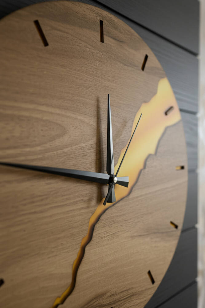 Sadece bir zaman ölçer değil, aynı zamanda dekorasyonunuzu tamamlayan sanatsal bir objedir. 40 cm'lik geniş çapı ile duvarda zengin bir duruş sergilerken, ceviz ve altının zamansız uyumu her türlü mobilya tarzına (modern, endüstriyel, rustik) eşlik eder.
